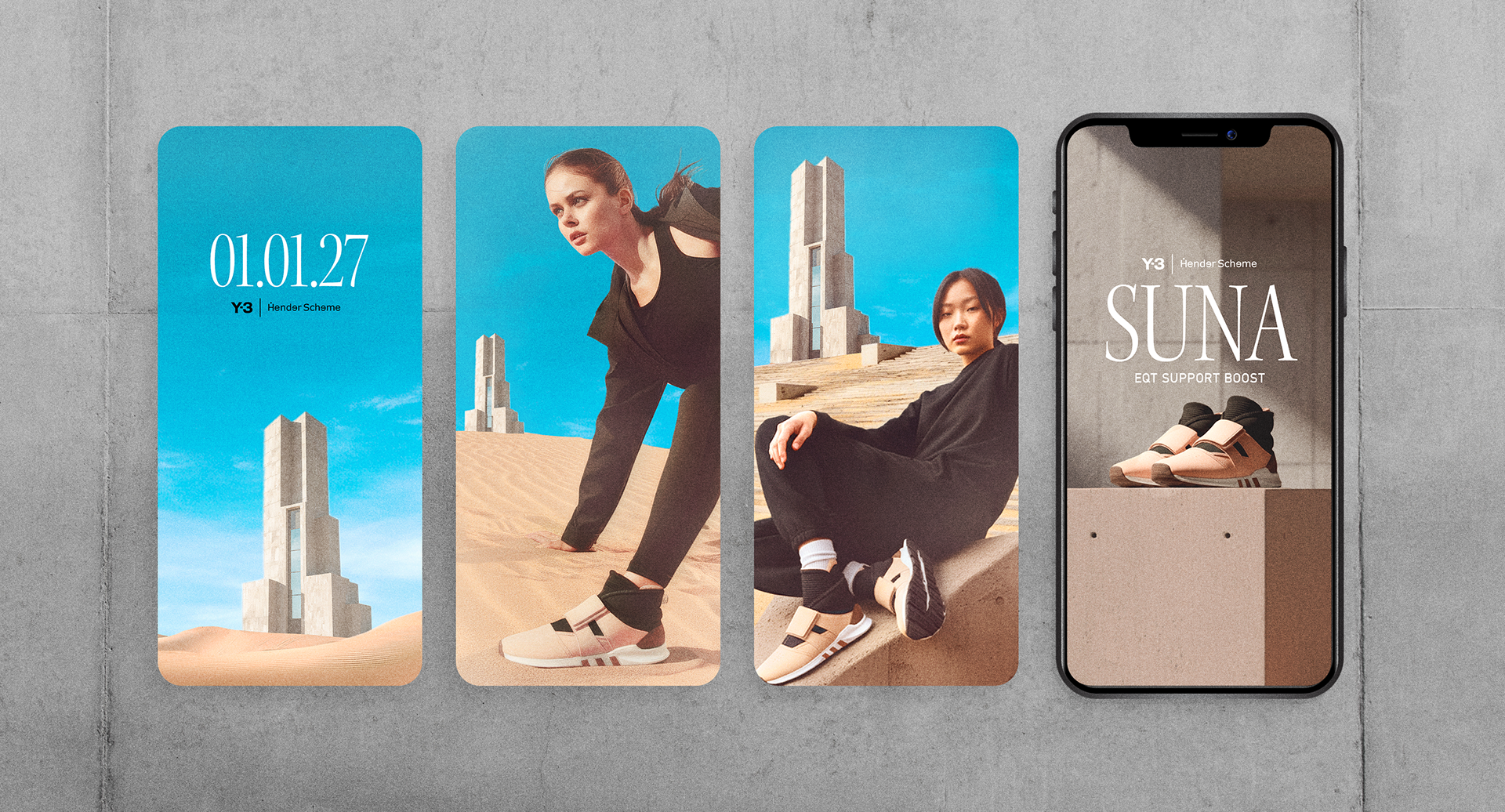 I made a concept for a shoe called the Suna EQT Boost for the Adidas Y3 x Hender Scheme to promote their Spring/Summer collaboration. Additionally, I mocked potential areas where the brand would show up in digital and print. The concept was Find Your Oasis encouraging audience to go on a their own style journey. Their target audience is 18-35, people who love fashion, personal style, and spending time doing activities that replenish their spirits.